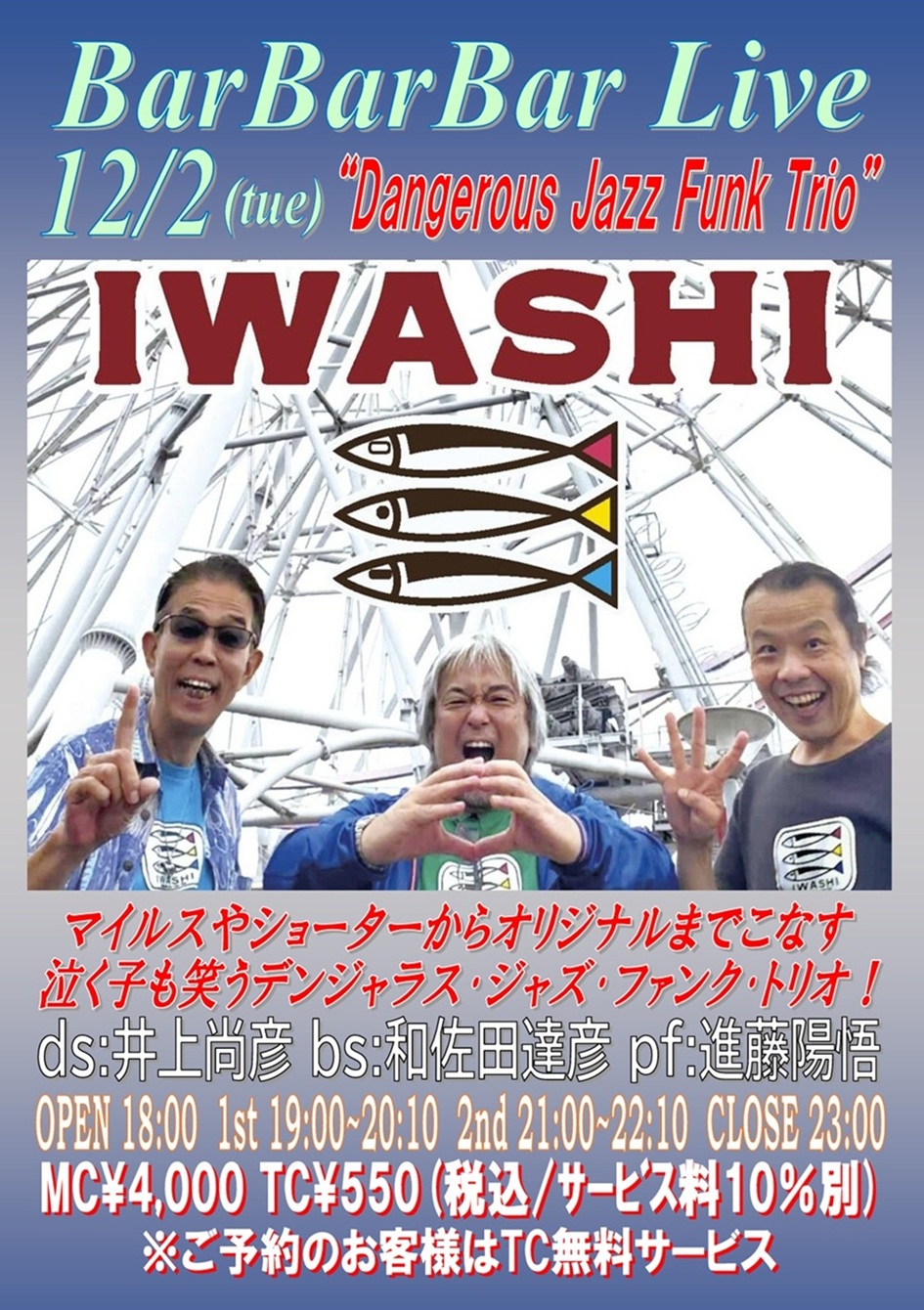 30 | 1 臨時休業 | 2 ●Dangerous Jazz Funk Trio“いわし”